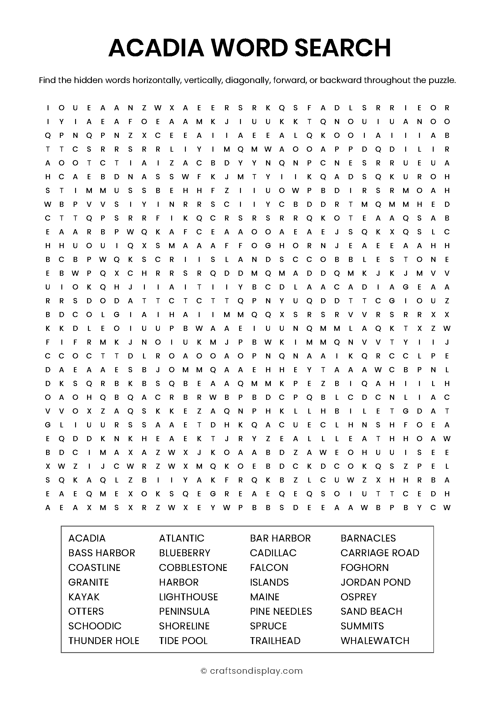 Revisit the rugged beauty of Maine’s coastline and the famous granite peaks that make Acadia a coastal treasure. [Download Puzzle and Answer Key PDF]