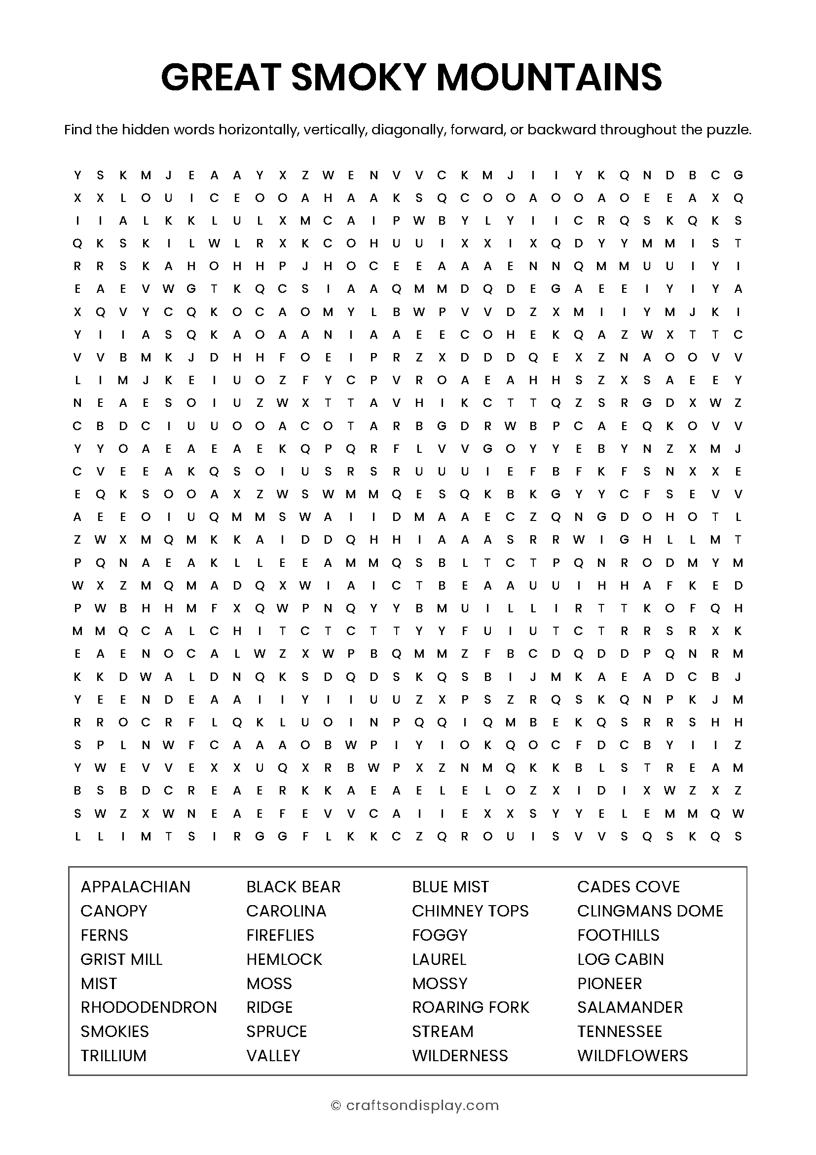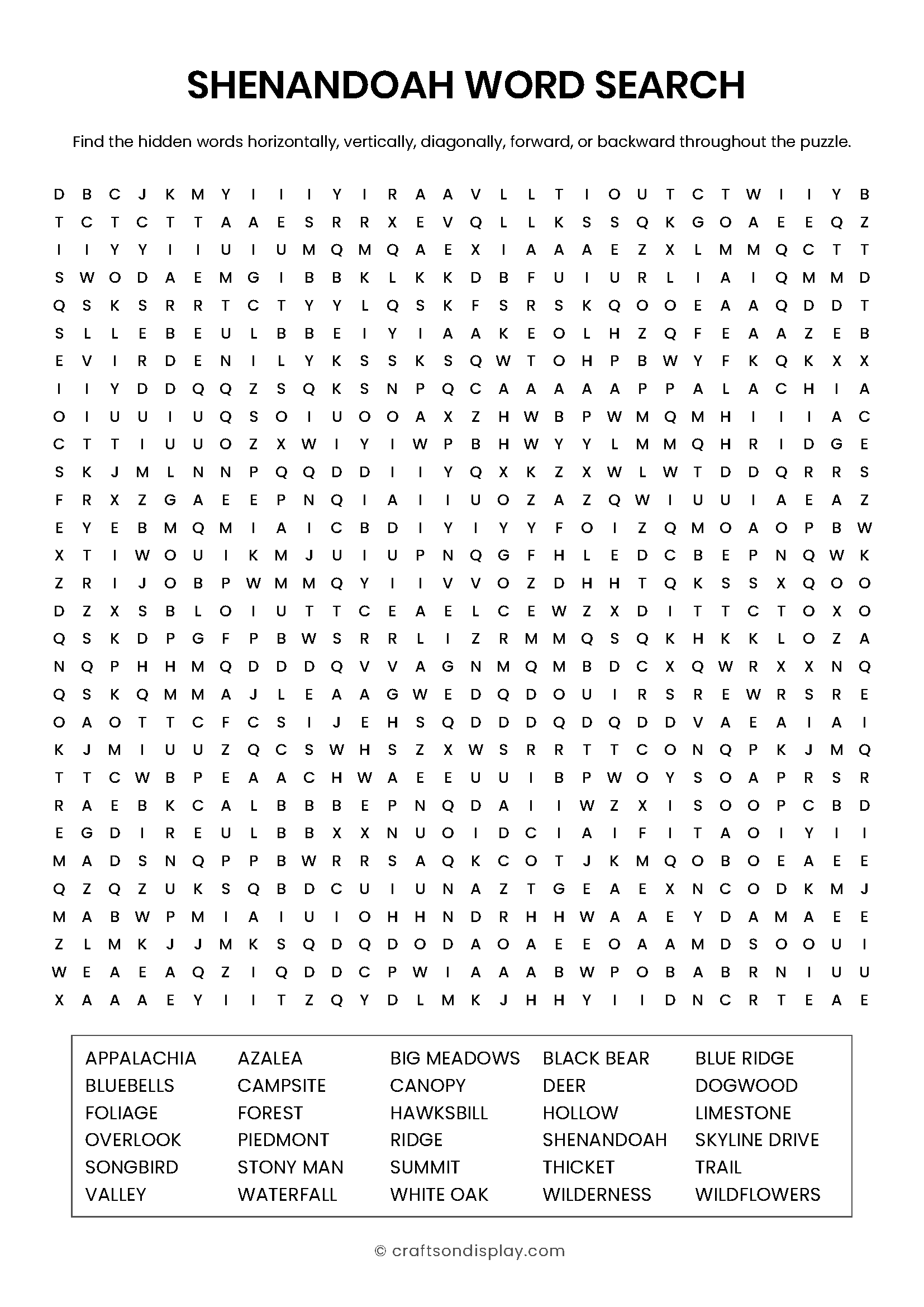 Celebrate the rolling hills, stunning overlooks, and lush forest canopies of the Appalachian Mountains. [Download Puzzle and Answer Key PDF]