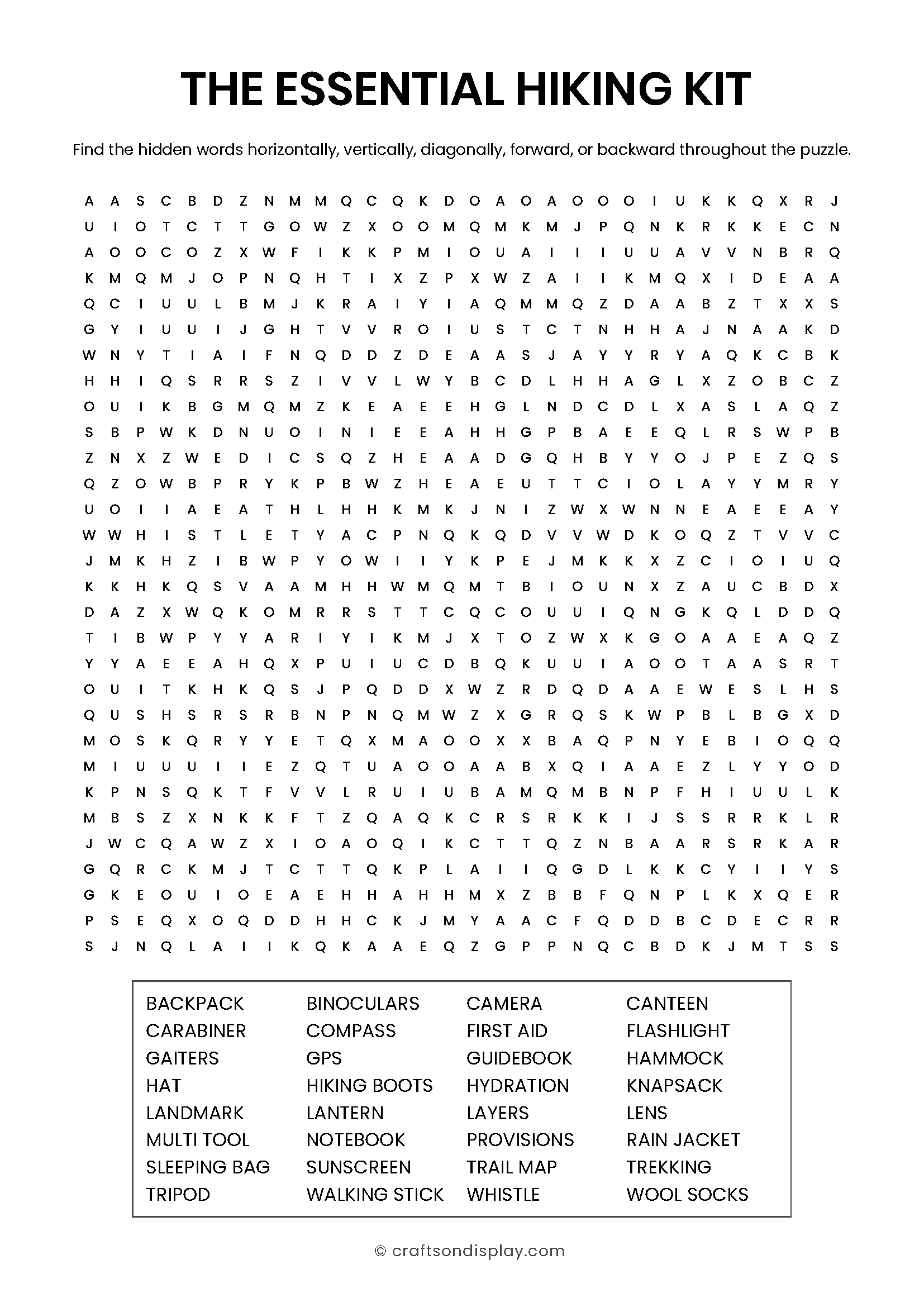 A fun look at the gear that keeps us safe on the trail, including everything from binoculars and compasses to trekking poles. [Download Puzzle and Answer Key PDF]