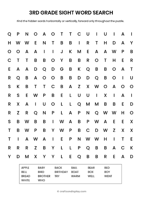 The 2nd Grade collection increases the challenge with 15 hidden words. Because these lists include more complex adverbs and verbs, they provide an excellent bridge for students expanding their vocabulary. Furthermore, the 12×12 grid size encourages improved visual tracking skills.